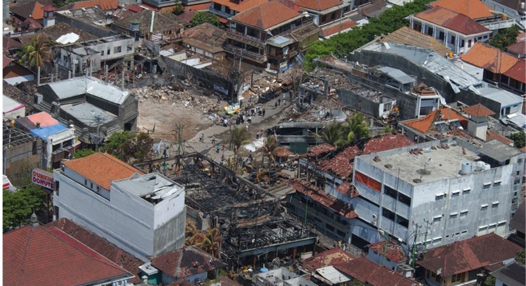 Image: Aerial photograph of aftermath of Bali Bombing, 2002 (Source: AFP)