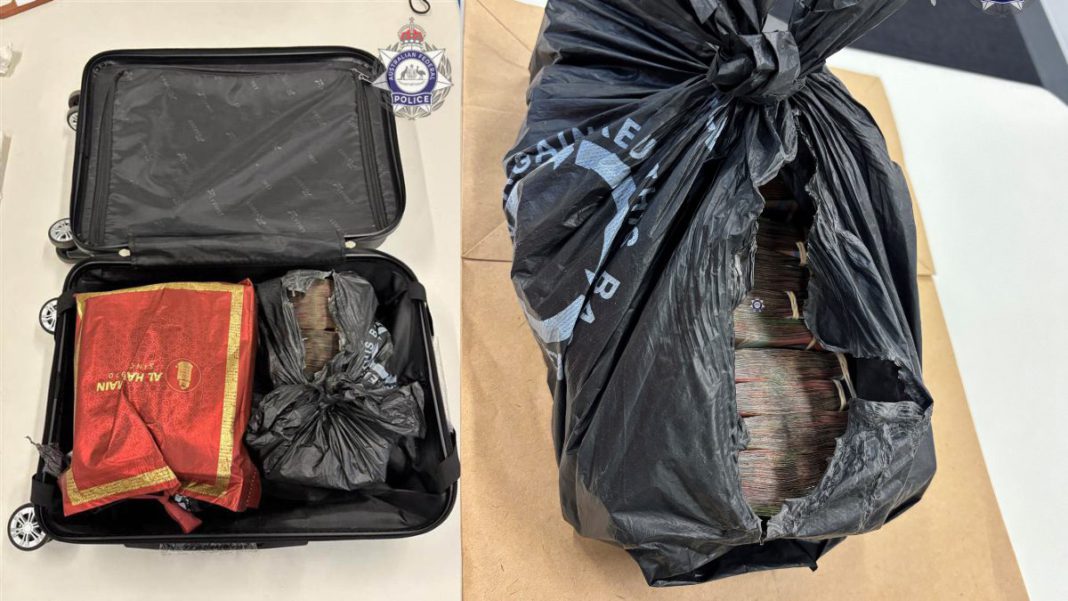 AFP officers searched the bag and allegedly uncovered two black plastic bags filled with bundles of $50 and $100 notes.