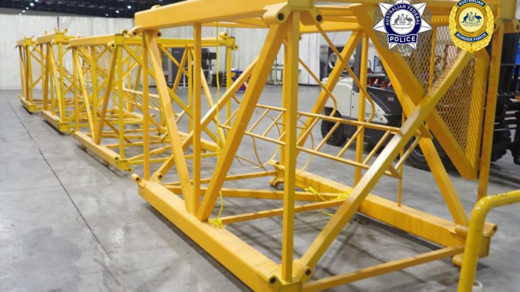 The drugs were discovered after Australian Border Force (ABF) officers intercepted three containers and uncovered hidden plastic pipes and packages inside the crane structures. Forensic testing confirmed the 390kg of crystalline substance was methamphetamine.