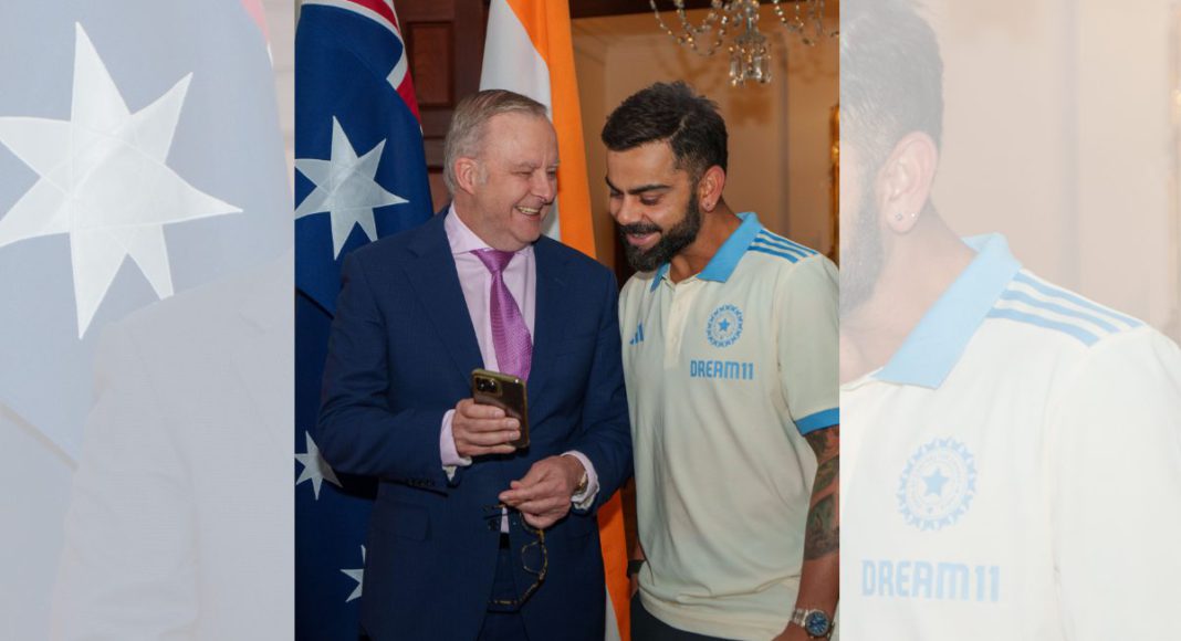 Image: Prime Minister Anthony Albanese seen sharing a laugh with Indian captain Virat Kohli 9Source: X)