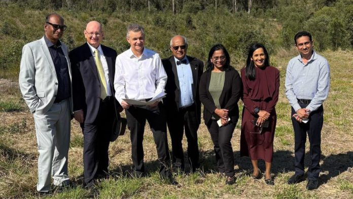 Dr Preethi Suraj, President of the Federation of Indian Communities of Queensland (FICQ), Jim Varghese AM, Chair of the Springfield City Group Board, and FICQ team joined Shyane Neumann MP to welcome Assistant Minister for Immigration Matt Thistlethwaite MP to the future site of the “House of India” community and cultural centre in Greater Springfield.