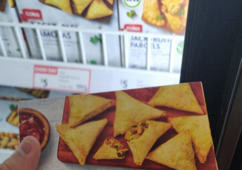 Many shoppers have recently shared an image of a pack of Coles brand frozen Indian Style triangles on social media.