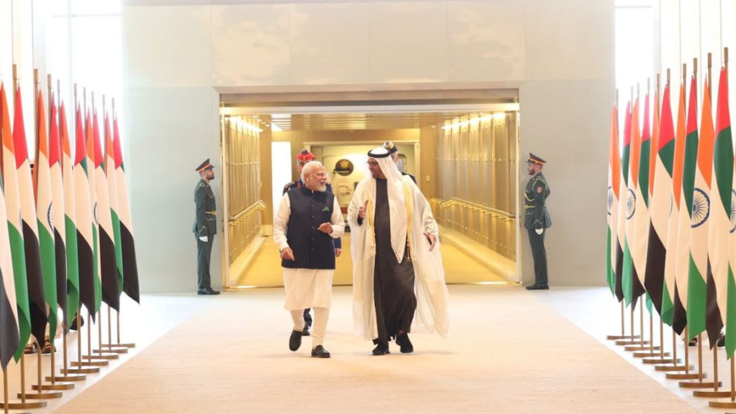 The economic relations between India and the UAE have evolved significantly over the years, shaping the bilateral ties into a robust partnership anchored by trade and investment. Traditionally, trade between the two nations revolved around items such as pearls, fish, and dates until the discovery of oil transformed the economic landscape of the region. Since the unification of the UAE in 1971, export from India to the region has steadily increased, with the UAE emerging as India’s third-largest trading partner and the second-largest export destination, surpassed only by the United States. Reciprocally, India stands as the Emirates’ second-largest trading partner. The UAE’s foreign direct investment (FDI) in India has soared, surpassing $12 billion, with significant investments in prominent Indian companies such as Jio platform, Adani, Tata Motors, and Tata Power, totaling over $6 billion from Abu Dhabi alone. The establishment of a comprehensive free trade agreement in 2022 has further bolstered economic ties, granting duty-free access to a variety of goods and loosening regulations to encourage investment. Energy cooperation stands as a cornerstone of the relationship, with the UAE ranking among the top five largest suppliers of crude oil to India. Furthermore, the UAE has pledged collaboration with India on renewable energy projects and has entered into agreements with Indian states like Karnataka for strategic crude oil storage, highlighting the depth and breadth of economic collaboration between the two nations.