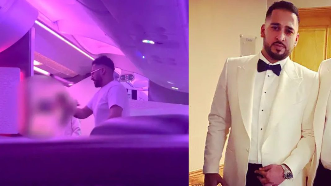 Salman Iftikhar, 38, from Iver, Buckinghamshire, became violent midair in February 2023 while travelling first class with his three children and one of his wives.