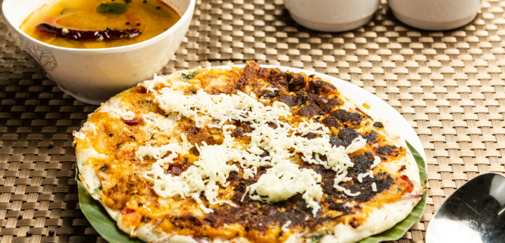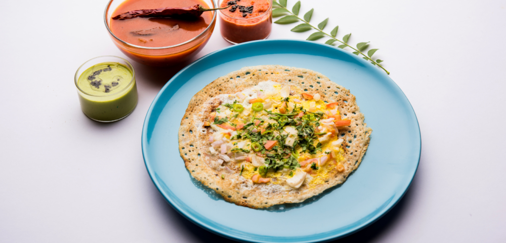 These uttapams are made from sama ke chawal or vrat ke chawal flour (barnyard millet flour). Sprinkle chopped tomatoes and serve hot with mint-yogurt dip.