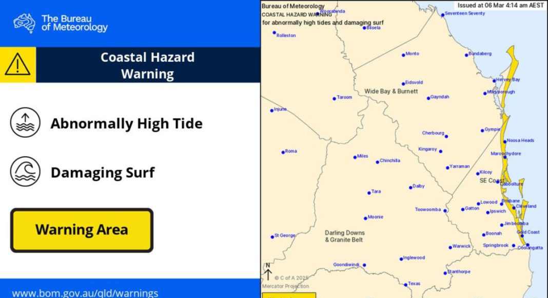 The bureau has issued warnings from Double Island Point in Queensland to Grafton in NSW. The area includes Brisbane, the Gold Coast, the Sunshine Coast, Byron Bay and Ballina.