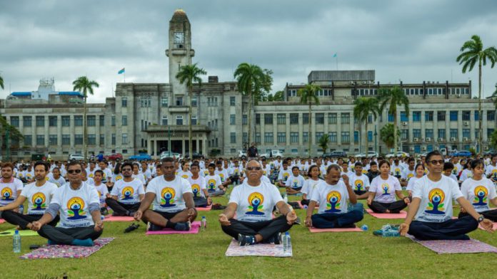 Fiji’s Deputy Prime Minister Prof. Biman Prasad, dignitaries, diplomats, locals, and students participated in large numbers to show their support to yoga.