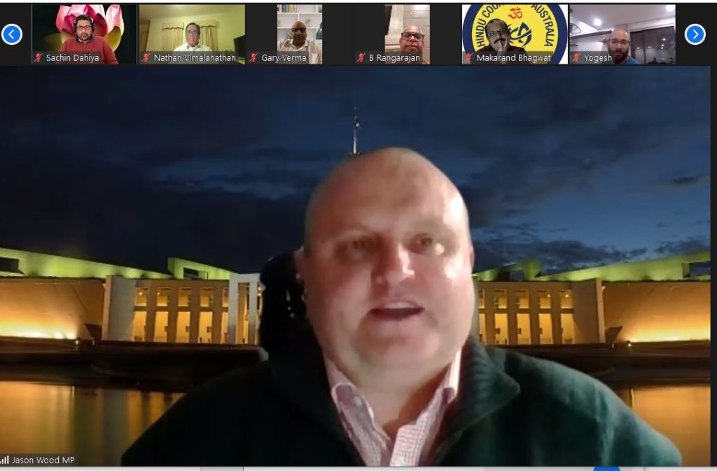Federal Assistant Minister for Multicultural Affairs Jason Wood graces the virtual program and assured the Hindu community of all the help and support regarding community concerns on multiple issues.