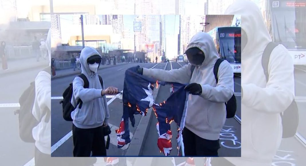 Image: Burning of the Australian flag at Sydney rally by “Abolish Australia”.(Source: Facebook – Hindu Council of Australia)