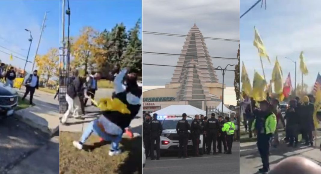 Videos circulating on social media appears to show demonstrators wielding Khalistan flags and striking Hindu worshippers with poles, sparking public outcry and prompting a response from federal and local leaders.