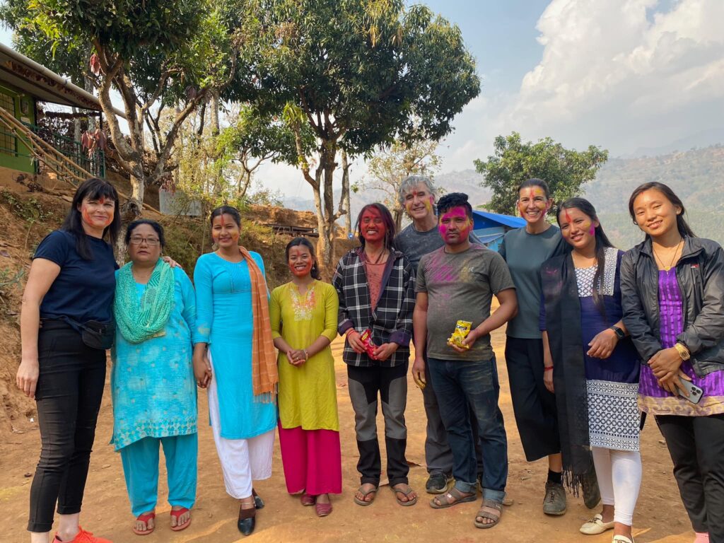 Image: Ben celebrating the colourful festival of Holi with all the teachers (Source: Facebook – Chaughada Progressive English School)