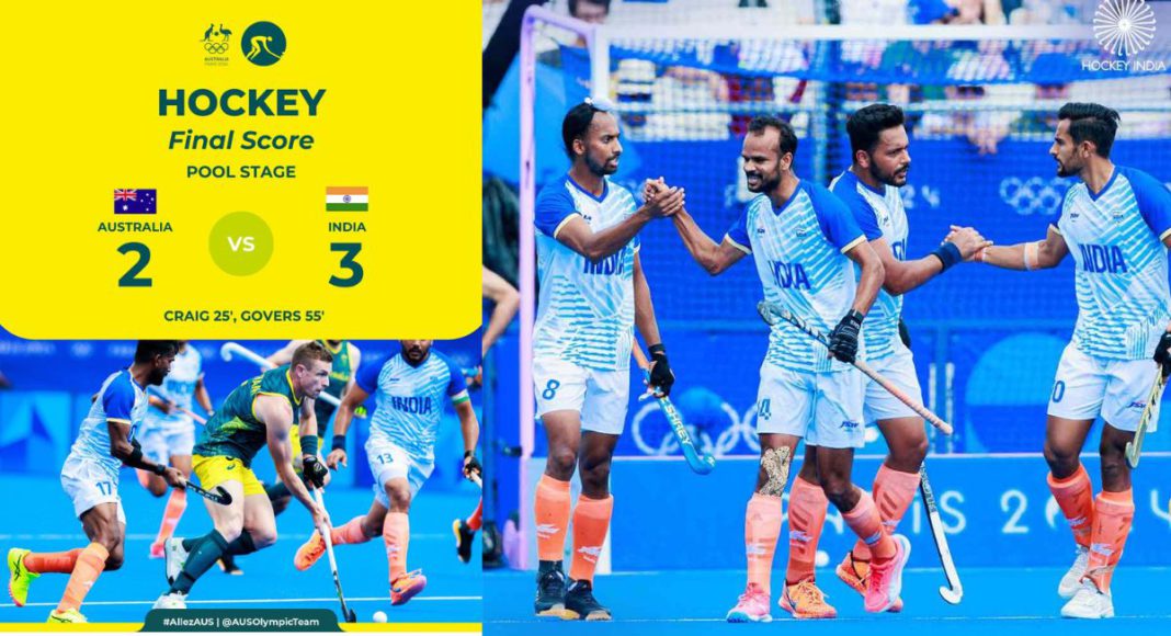 The Indian men’s hockey team beat Australia with a 3-2 victory in their final Pool B match, marking their first win against the Kookaburras in 52 years at the Paris Olympics 2024, .