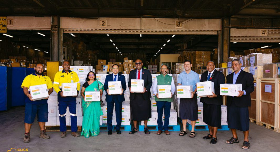 India’s High Commissioner Suneet Mehta presented the shipment to Minister for Health and Medical Services, Dr Ratu Atonio Lalabalavu, in the presence of Assistant Minister Penioni Ravunawa, Permanent Secretary Dr Jemesa Tudravu, UNAIDS Ambassador Ratu Epeli Nailatikau and senior health officials.