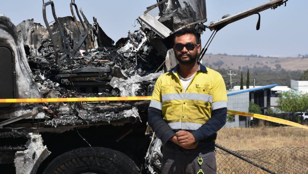 “I jumped out of the truck to fill it up and then straight away I saw the truck had caught on fire. I started up the truck and tried my best to get it into the parking bay but in the meantime the fire just kept on spreading so there wasn’t a lot of time.”