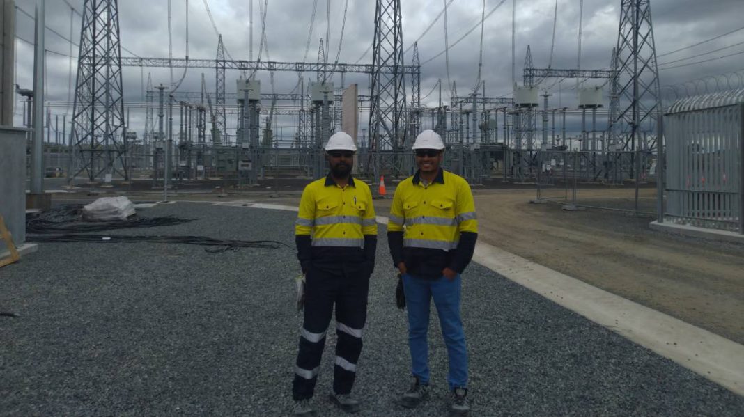 Hansel Gracias, Commissioning Engineer, and Jaskaran Singh, Installation Supervisor from Siemens Energy, have started working at the Transgrid Dumaresq substation.