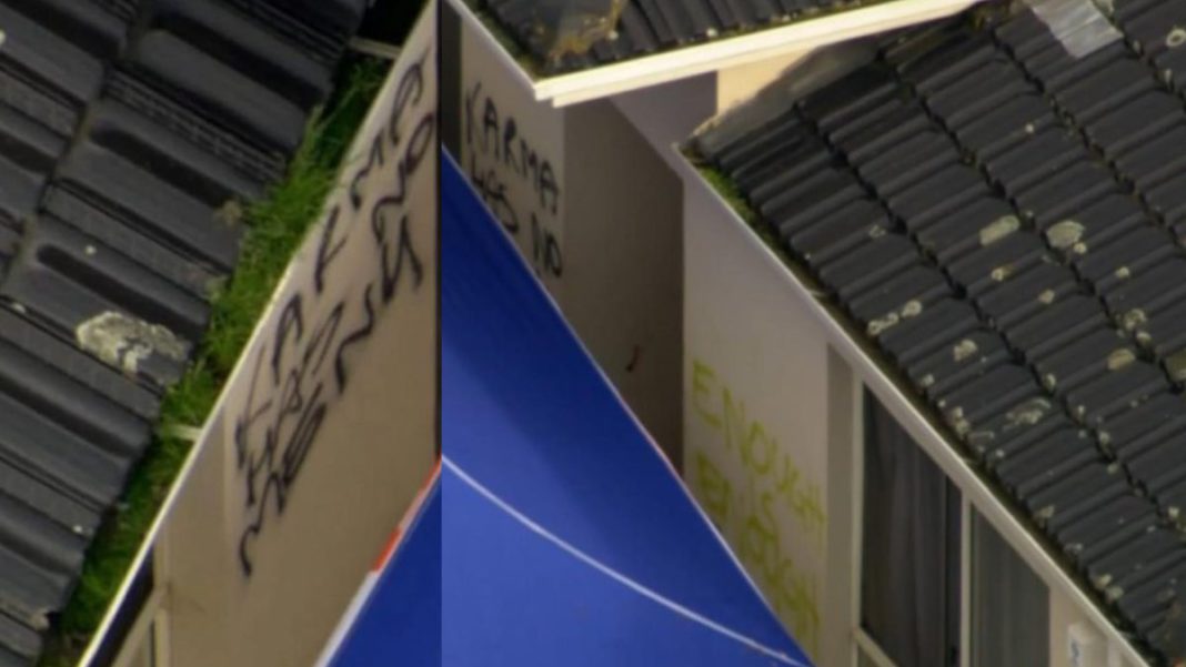 “Karma is not a menu” graffiti at Melbourne home where pregnant woman and decapitated man found dead