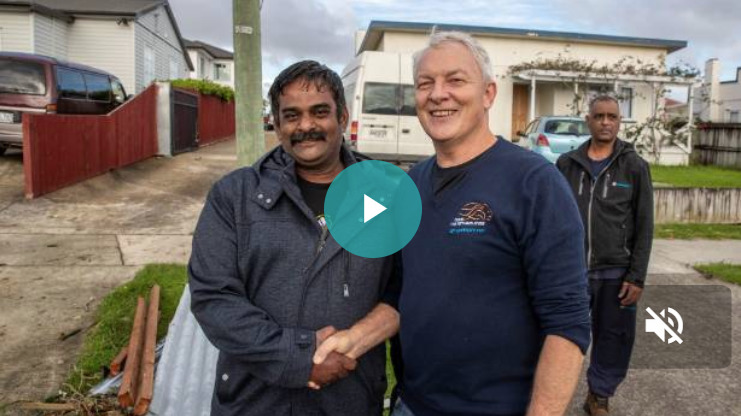 He has been praised as a builder who stepped in to put tarpaulins on more than 60 homes that lost their roofs and windows after a tornado struck south Auckland.