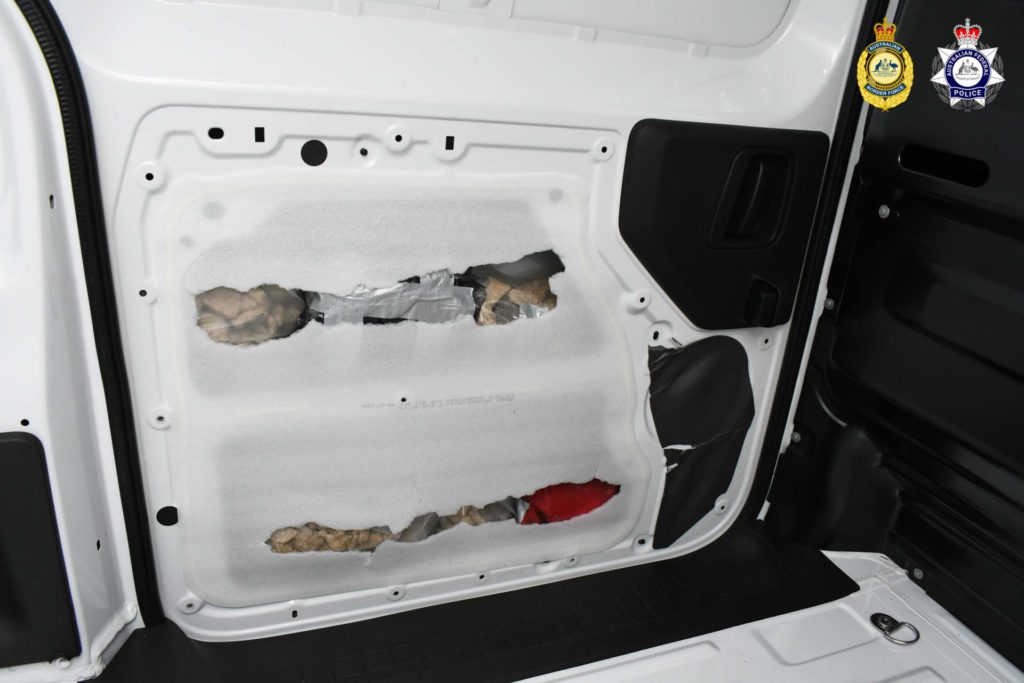 The AFP seized the drugs, which were hidden in the sliding door panels of vehicles that were destined for New South Wales.