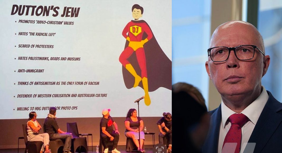 The controversy centres on a slide titled “Dutton’s Jew,” presented by Sarah Schwartz, a representative of the anti-Zionist Jewish Council of Australia.