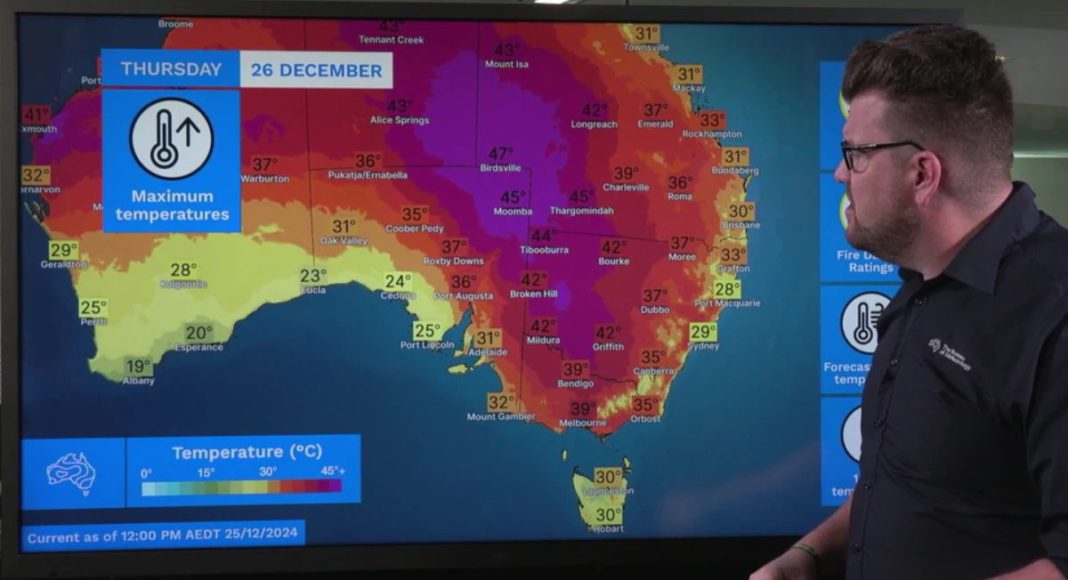 Sydney is expected to endure a cooler Boxing Day at 29°C but will see highs of 37°C on Friday, with western suburbs such as Penrith forecast to hit 41°C. Canberra is set to reach 35°C, while Brisbane’s temperatures will peak at 37°C on Friday.