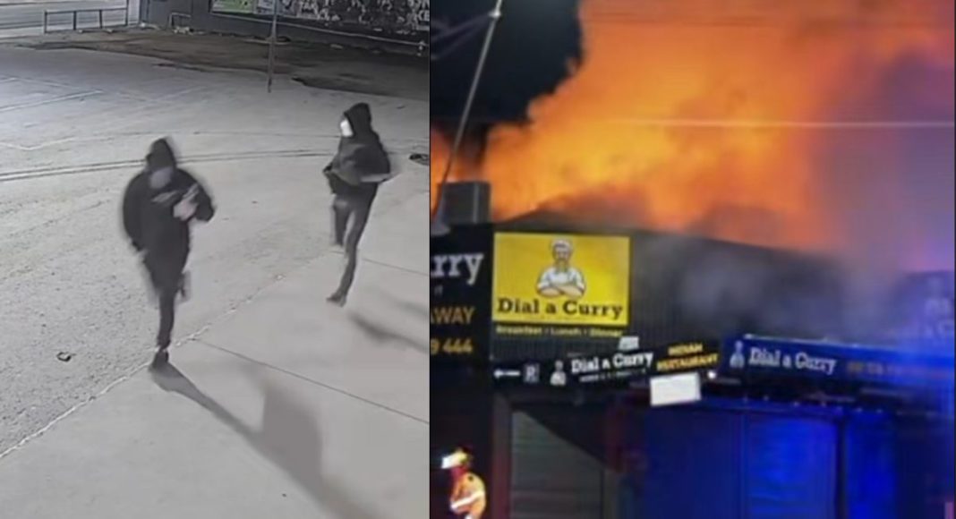 CCTV has captured two suspects fleeing the scene at Dial a Curry at South Plympton.