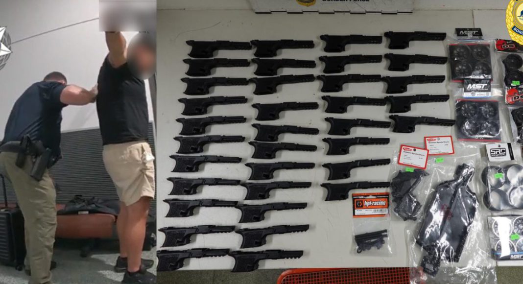 The Australian Border Force (ABF) stopped the man at Brisbane International Airport on 26 June after he arrived on a flight from the US. During an inspection, officers allegedly found documentation related to the import of firearm components, including consignment details for nine separate packages. The matter was referred to the Australian Federal Police (AFP) for further investigation.