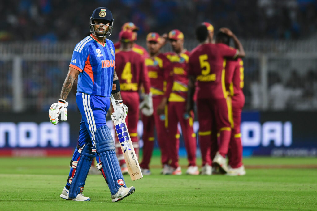 India’s reply began briskly, but Akael Hosein removed Abhishek Sharma for 10, and Shimron Hetmyer held a sharp catch to dismiss Ishan Kishan for 10, leaving India under early pressure.