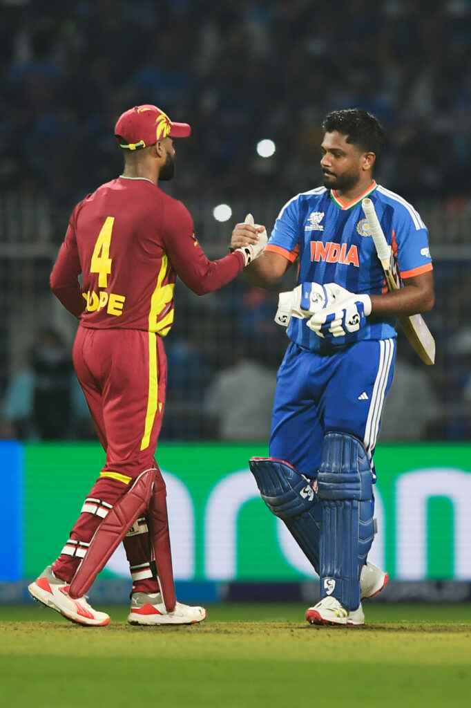 A masterclass 97 not out from Sanju Samson carried India to a five-wicket victory over West Indies in a high-pressure Super Eight clash at Kolkata’s Eden Gardens, sealing a semifinal berth in the ICC T20 World Cup.