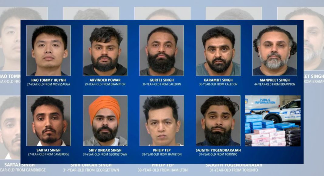 The men arrested and charged in this alleged trafficking operation include Hao Tommy Huynh (27, Mississauga), Sajgith Yogendrarajah (31, Toronto), Manpreet Singh (44, Brampton), Philip Tep (39, Hamilton), Arvinder Powar (29, Brampton), Karamjit Singh (36, Caledon), Gurtej Singh (36, Caledon), Sartaj Singh (27, Cambridge), and Shiv Onkar Singh (31, Georgetown).