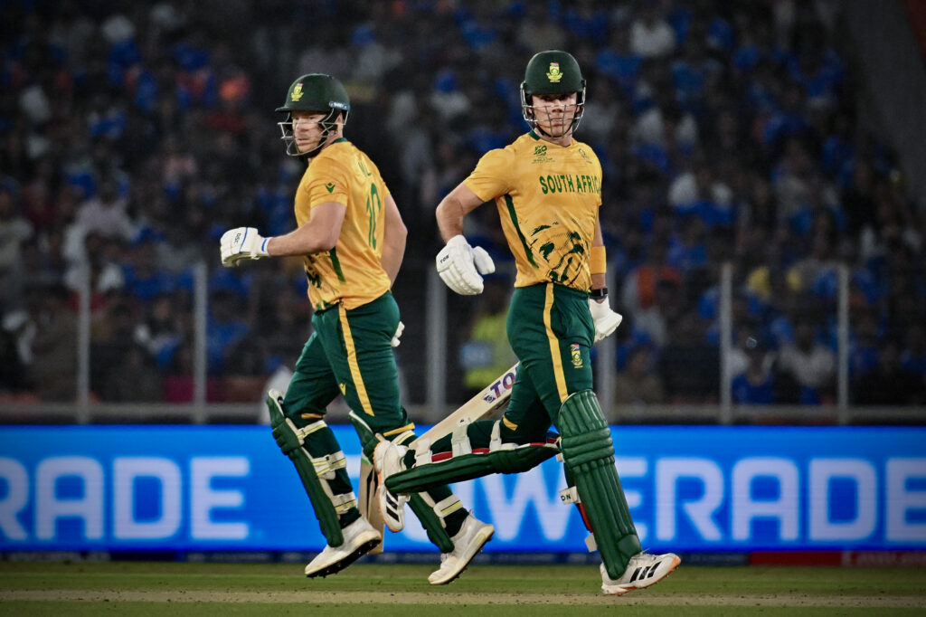 Ahmedabad, Feb 22 (ANI): South Africa’s David Miller and Dewald Brevis run between the wickets during the ICC Men’s T20 World Cup 2026 Super 8 Group 1 match against India at Narendra Modi Stadium, in Ahmedabad on Sunday. (ANI Photo)