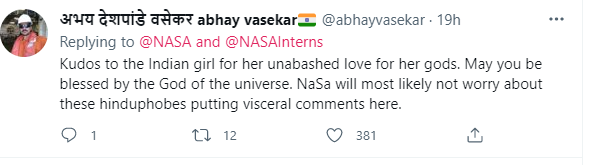 He further added to his tweet and questioned the judgement of NASA for selecting that particular image. After Twitterati raised the issue of Hinduphobia Ashok Swain appears to have deleted his quoted tweet since then.