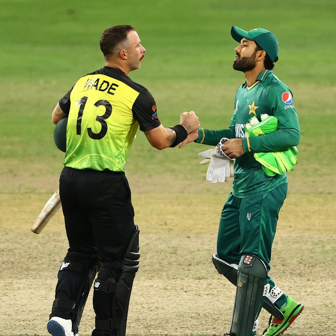 Brief Scores: Pakistan 176/4 (Mohammad Rizwan 67, Fakhar Zaman 55*; Mitchell Starc 2-38) vs Australia 177/5 (David Warner 49, Matthew Wade 41*, Shadab Khan 4-26).