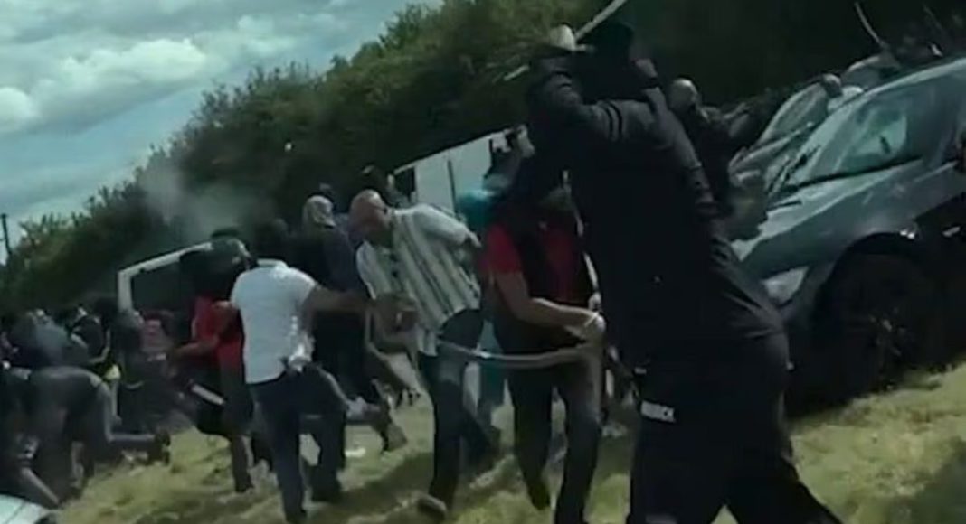 It is further reported that officers were called after reports of shots being fired, with footage later likened to a “medieval battle”.