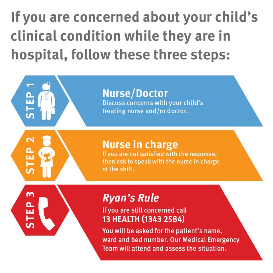 Parents and carers in Queensland can invoke Ryan’s rule which allows them to request an urgent clinical review if they feel their child or ward is deteriorating and is not getting adequate care. This rule has been credited with many positive outcomes in Queensland Hospitals.